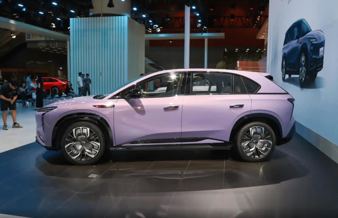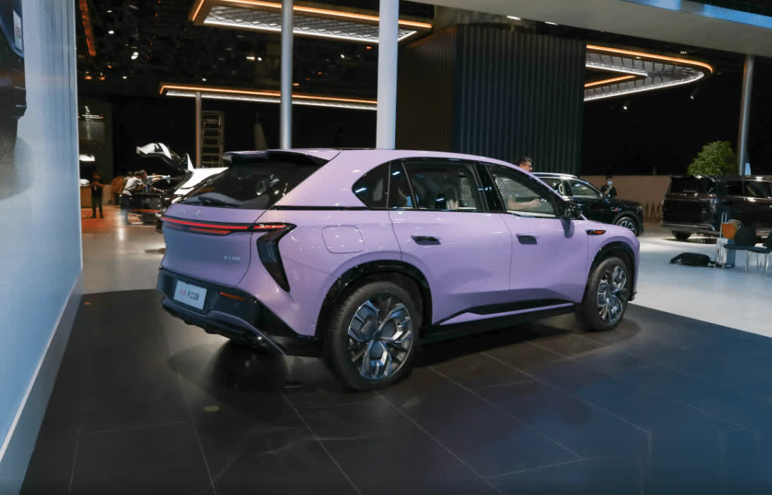 而来到车侧之后,你会发现红旗天工08的玻璃平整度很高,而这也极大程度的优化了车身的风阻系数,同时在跑高速时,车窗周围的风噪也会更小一些。此外,在前叶子板处仍然保留了红旗标志性的旗标,而造型夸张的轮毂样式,也让整台车看着更加前卫。而且需要注意的是,四驱版本的红旗天工08,它的前后轮尺寸还不一样,例如四驱红旗天工08的前轮规格为255/45 R21,后轮则是275/40 R21。